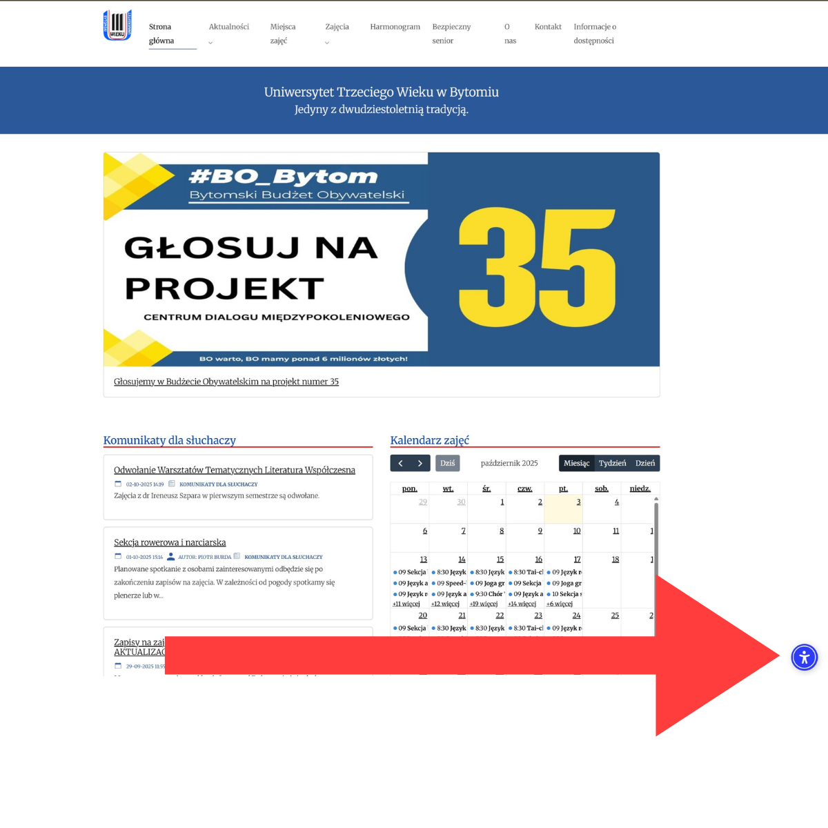 Ustawienia dostępności znajdują się pod niebieska ikona w prawym dolnym rogu strony